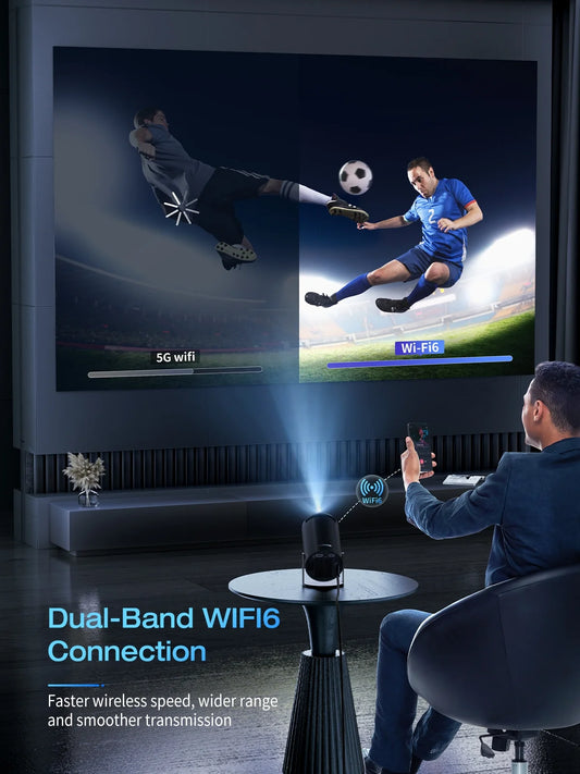 Projector 4K 1080P Support, Mini Projector Smart for Movie Projection Compatible with Phone-Black